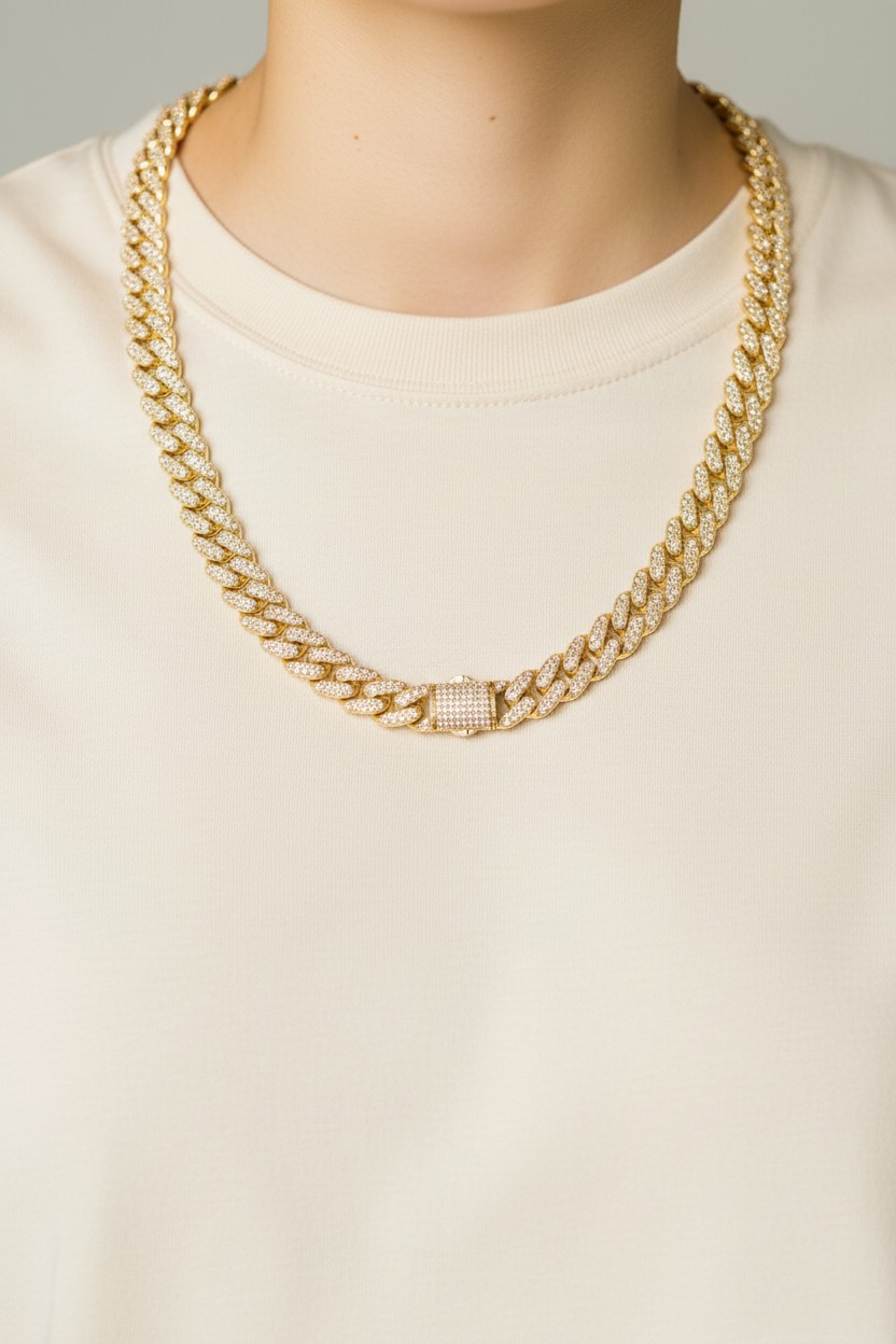 A corrente Ice com elos arredondados é uma deslumbrante joia que combina elegância e estilo em uma única peça. Esta corrente é cuidadosamente cravejada com zircônias cintilantes que capturam a luz de maneira deslumbrante, adicionando um toque de brilho e sofisticação ao seu visual. Seu design exclusivo apresenta elos arredondados, conferindo-lhe uma estética moderna e contemporânea.