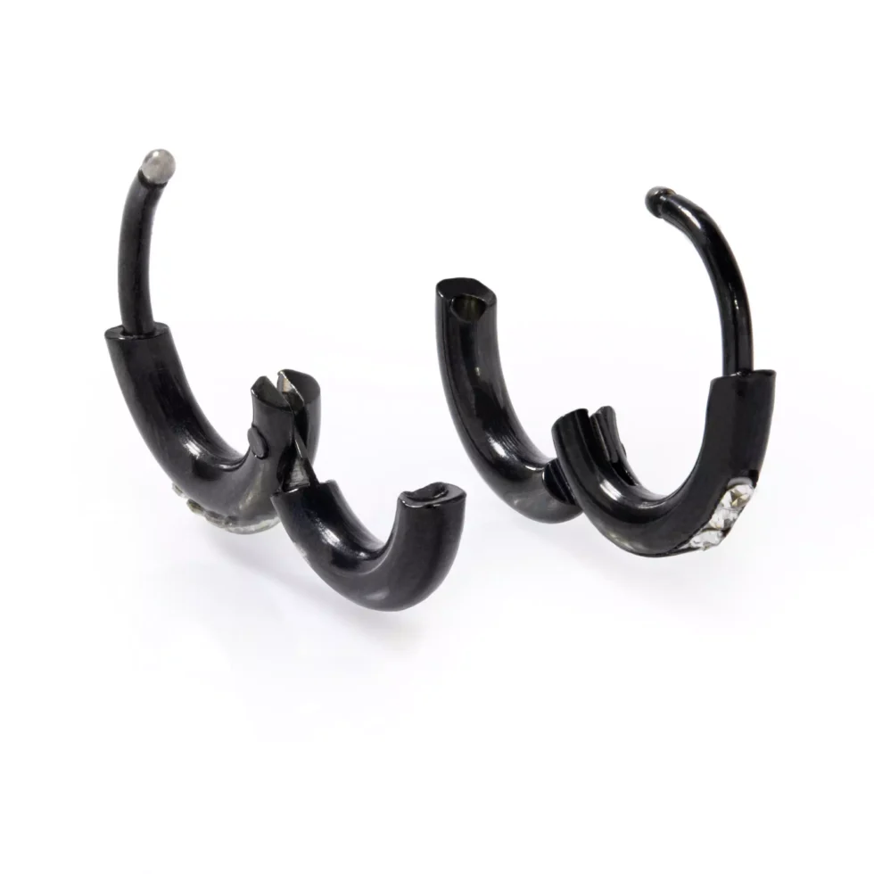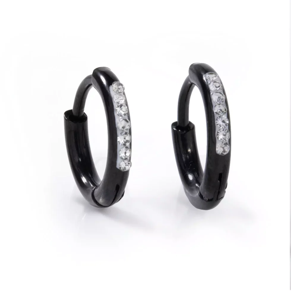 O Brinco Argola Black Crystal combina o visual marcante do aço preto com o brilho sofisticado das zircônias transparentes. Uma peça moderna e versátil, perfeita para quem busca estilo e atitude em qualquer ocasião.