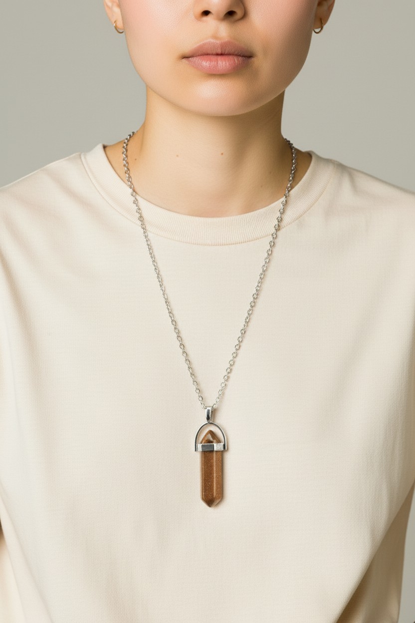 Esse lindíssimo conjuntinho unissex de pedra é ideal para incrementar seus looks! A corrente é de Aço Inoxidável 316 L de altíssima qualidade, e o pingente é feito de PEDRA DO SOL. Se presenteie ou presenteie alguém querido com essa maravilhosa peça!Há uma lenda que diz que monges e alquimistas produziram uma pedra que cintilava como ouro. Ela passou a ser conhecida como Pedra do Sol, em homenagem ao deus grego Hélios, deus do Sol.