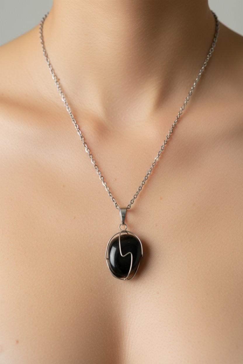 Colar De Pedra Natural de Hematita Corrente De Aço Inoxidável