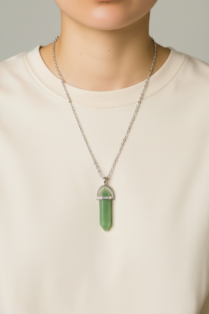 Colar De Pedra Natural de Quartzo Verde Corrente De Aço Inoxidável