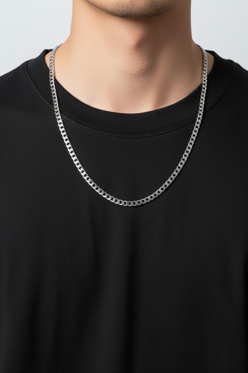 Pode ser usado sozinho para um look clean ou combinado com outras correntes para composições modernas