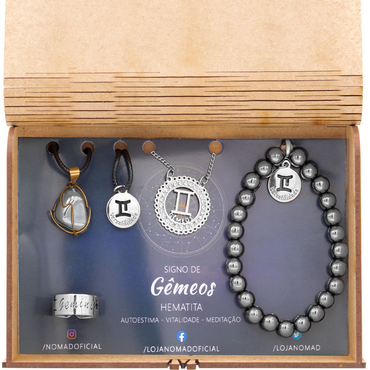 Que tal adquirir um produto único, especial e ideal para presentear uma pessoa querida? Com nosso CONJUNTO DE SIGNO DE GÊMEOS você pode! O kit conta com uma linda caixinha e 5 itens personalizados feitos especialmente para os geminianos.