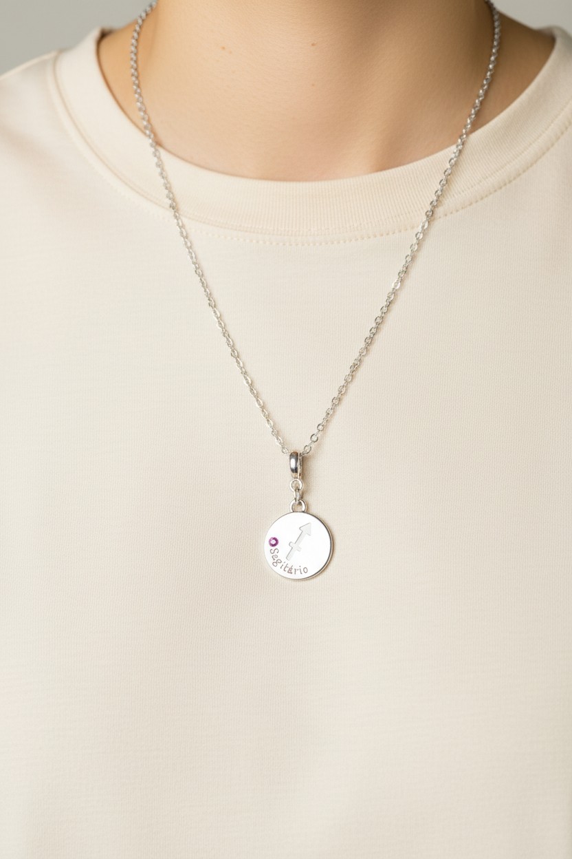Esse lindíssimo conjuntinho unissex do signo de SAGITÁRIO é ideal para incrementar seus looks! A corrente é de Aço Inoxidável 316 L e o pingente é confeccionado e banhado a Níquel, garantindo assim uma excelente durabilidade; o acabamento é minucioso com direito a um belo ponto de luz e pode ser usado em pulseiras de berloque! Se presenteie ou presenteie alguém querido com essa linda e delicada peça! Sagitário é o nono signo astrológico do zodíaco, seu símbolo é o centauro. É um signo do elemento Fogo, regido por Júpiter. Sagitarianos são famosos por serem muito aventureiros, cheios de amigos bastante sinceros.