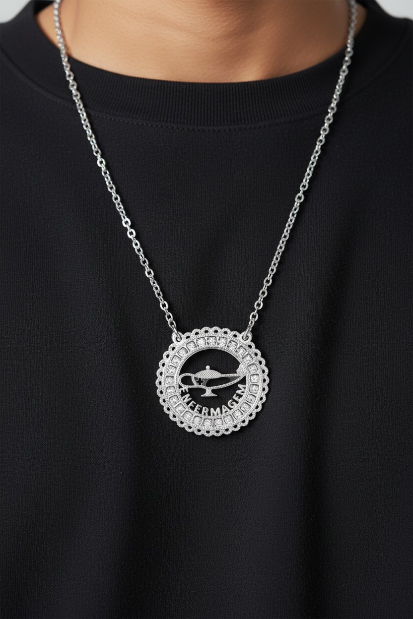 Corrente de Profissão Enfermagem de Aço Inox 316L Cravejada com Zircônias