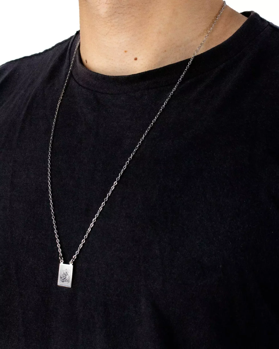 O Escapulário São Jorge Shield traz duas medalhas retangulares em prata, uma com a imagem de São Jorge gravada e outra com escudo estilizado vazado. Um símbolo de fé, proteção e coragem, perfeito para uso diário ou para presentear alguém especial.