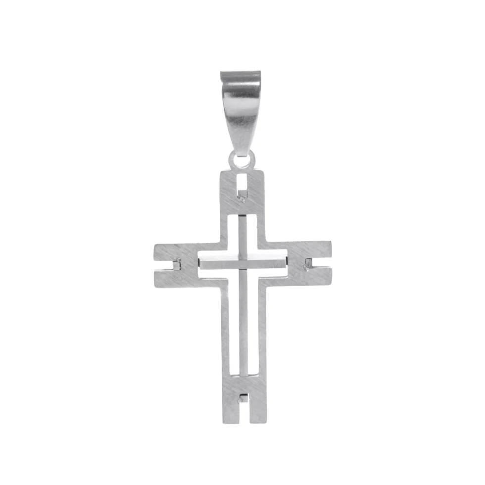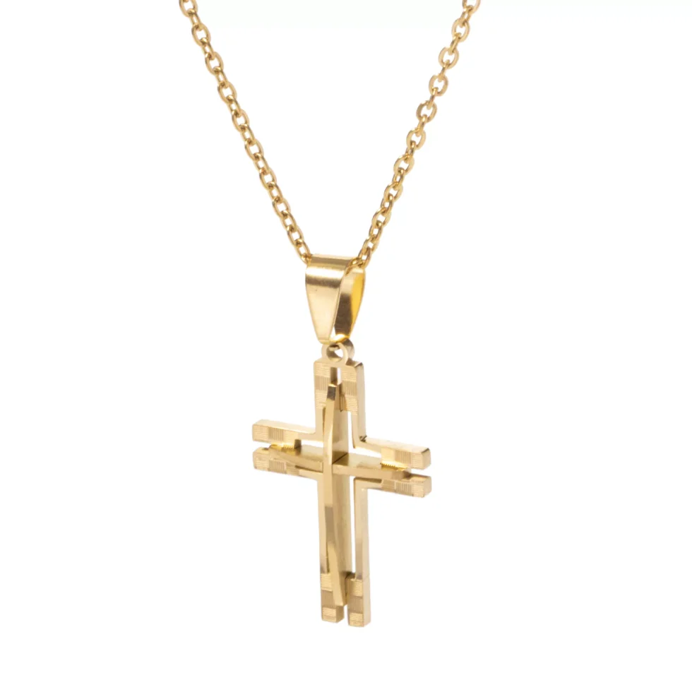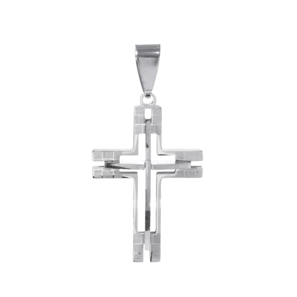 O Pingente Steel 3D Faith Cross traz imponência e modernidade: cruz tridimensional em aço inoxidável, com entalhes riscadinhos que destacam cada detalhe. Disponível nas versões prateada e dourada, é perfeito para expressar fé e estilo em qualquer ocasião.